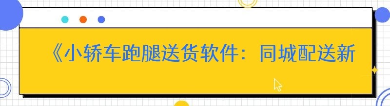 《小轿车跑腿送货软件:同城配送新时代的便捷之选》