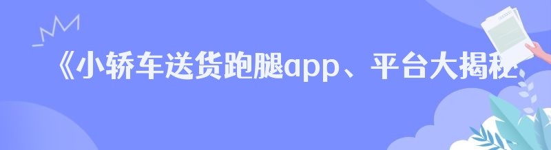 《小轿车送货跑腿app、平台大揭秘及跑腿系统选择指南》