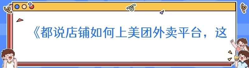 《都说店铺如何上美团外卖平台,这些你都知道吗!》