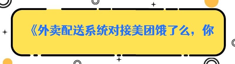 《外卖配送系统对接美团饿了么,你了解多少?》
