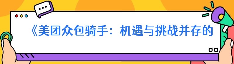 编辑 《美团众包骑手:机遇与挑战并存的职业选择》