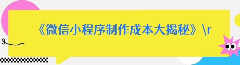 《微信小程序制作成本大揭秘》
