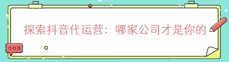 探索抖音代运营:哪家公司才是你的最佳选择?