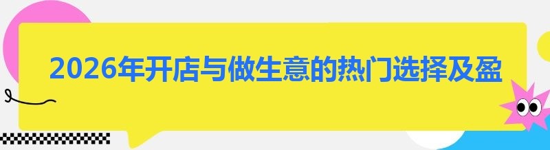 2026年开店与做生意的热门选择及盈利分析