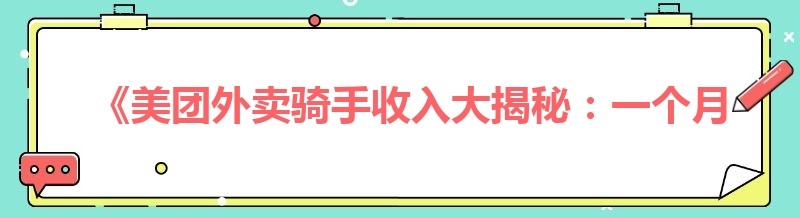 - 《美团外卖骑手收入大揭秘:一个月到底能赚多少钱?》