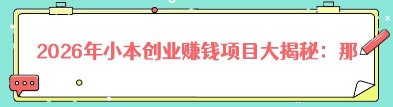在创业的道路上,并非只有投入巨额资金才能获得成功。有许多小本创业项目,虽然看似不起眼,但却蕴含着巨大的赚钱潜力。以下是一些在2026年备受关注的小本创业赚钱项目排行,以及一些你身边可能存在的不起眼却很赚钱的创业项目。