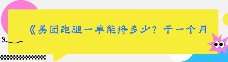 《美团跑腿一单能挣多少?干一个月又能挣多少?》