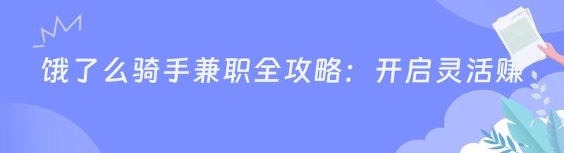 饿了么骑手兼职全攻略:开启灵活赚钱之旅