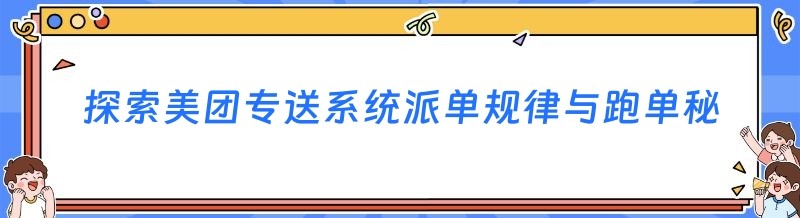 在如今竞争激烈的外卖配送市场中,美团专送骑手们都渴望了解系统的派单规律,以及如何成为跑单王。本文将深入探讨美团专送系统的派单规律,并分享一些单王们的跑单秘诀,希望能为广大骑手朋友们提供一些帮助。