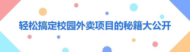 在大学校园里,外卖已经成为了学生们日常生活中不可或缺的一部分。对于想要开展校园外卖项目的创业者来说,如何在众多竞争对手中脱颖而出,轻松搞定这个项目,是一个需要认真思考的问题。本文将为你分享一些实用的方法,帮助你成功开展校园外卖项目。