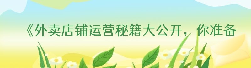 《外卖店铺运营秘籍大公开,你准备好了吗?》