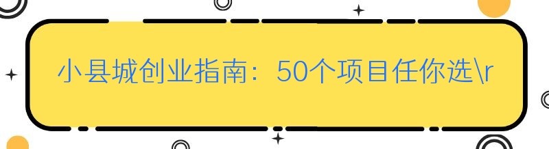 小县城创业指南:50个项目任你选
