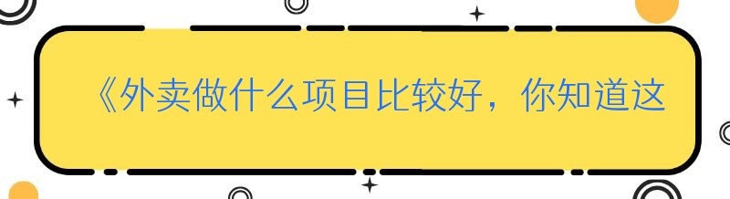 《外卖做什么项目比较好,你知道这些吗?》