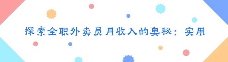 探索全职外卖员月收入的奥秘:实用方法大揭秘
