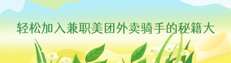 在当今社会,越来越多的人希望通过兼职来增加收入,而美团外卖骑手成为了一个热门的选择。那么,如何轻松搞定兼职美团外卖骑手的加入呢?下面这些方法绝对值得一试!
