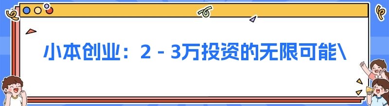 小本创业:2 - 3万投资的无限可能