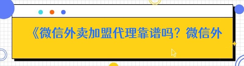 《微信外卖加盟代理靠谱吗?微信外卖靠谱吗?》