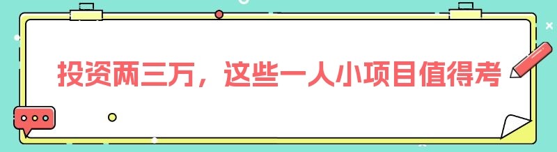 投资两三万,这些一人小项目值得考虑!