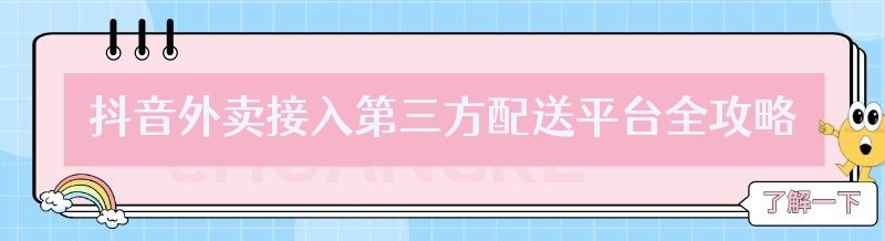 在当今的数字化时代,抖音外卖以其独特的平台优势和庞大的用户基础,为商家们带来了新的商机。然而,对于许多商家来说,如何接入第三方配送平台成为了一个关键问题。本文将为您详细介绍抖音外卖接入第三方配送平台的方法和步骤,帮助您顺利开展外卖业务。