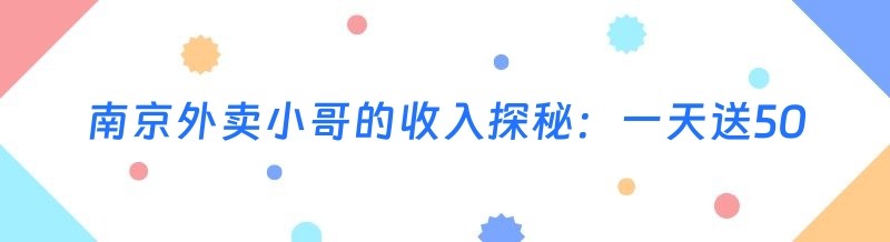 南京外卖小哥的收入探秘:一天送50单能赚多少?