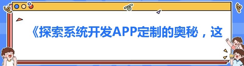 《探索系统开发APP定制的奥秘,这些干货你不容错过!》