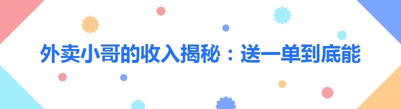 外卖小哥的收入揭秘:送一单到底能赚多少钱?