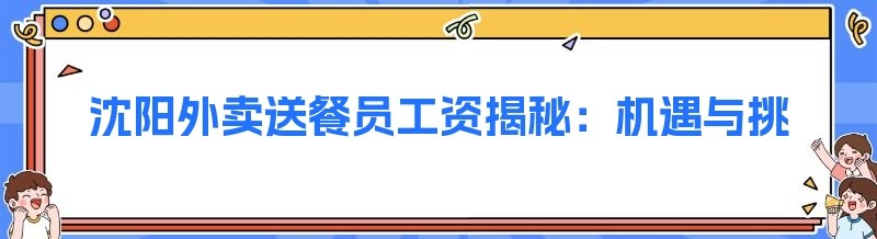 在沈阳这座充满活力的城市里,外卖行业如雨后春笋般蓬勃发展,外卖送餐员也成为了街头巷尾一道独特的风景线。那么,沈阳外卖送餐员的工资究竟怎么样呢?这是许多人都关心的问题。