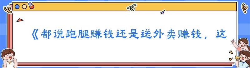 《都说跑腿赚钱还是送外卖赚钱,这些你都知道吗!》