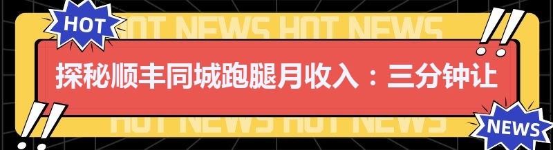 探秘顺丰同城跑腿月收入:三分钟让你心中有数!