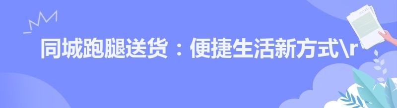 同城跑腿送货:便捷生活新方式