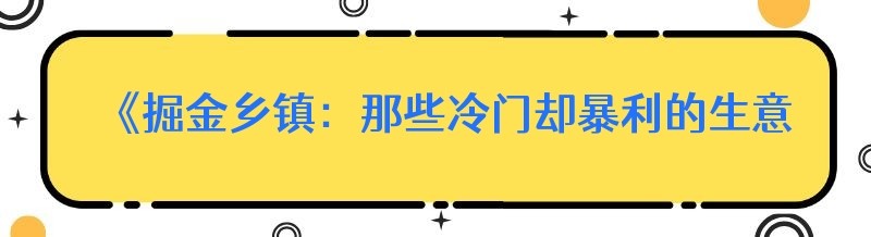 《掘金乡镇:那些冷门却暴利的生意与农村稀缺小生意大揭秘》