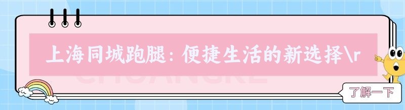 上海同城跑腿:便捷生活的新选择