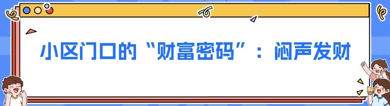 在生活中,我们常常会发现一些看似普通的地方,却隐藏着巨大的商机。小区门口,这个人们日常进出的地方,就是一个充满潜力的商业宝地。今天,就让我们一起揭开小区门口那些闷声发财的生意的神秘面纱,看看在家门口就能赚钱的机会都有哪些。