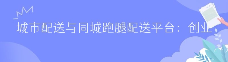 城市配送与同城跑腿配送平台:创业的盈利之道
