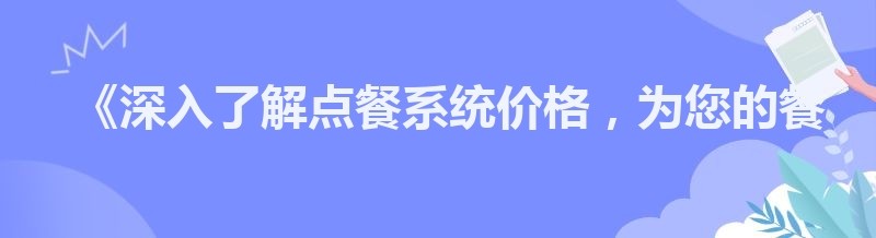《深入了解点餐系统价格,为您的餐饮事业精打细算》