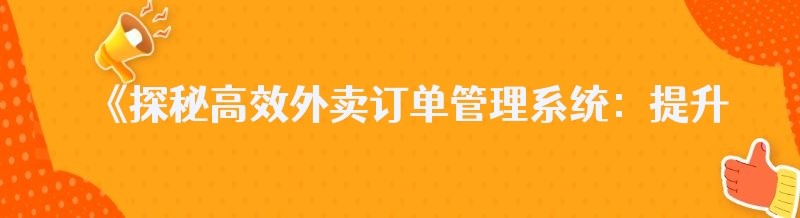 《探秘高效外卖订单管理系统:提升餐饮运营的关键利器》