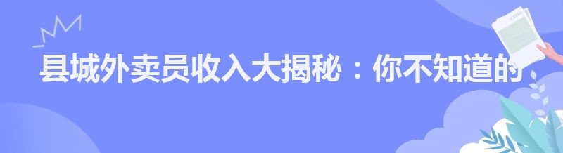 县城外卖员收入大揭秘:你不知道的那些事儿