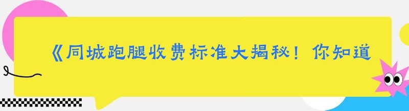 《同城跑腿收费标准大揭秘!你知道吗?》