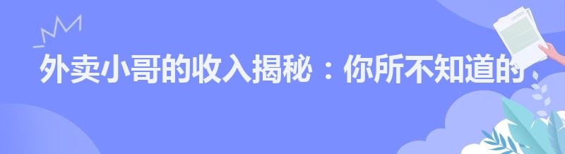 外卖小哥的收入揭秘:你所不知道的真相