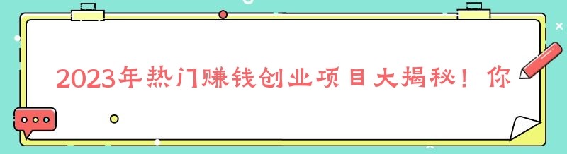 2023年热门赚钱创业项目大揭秘!你知道几个?