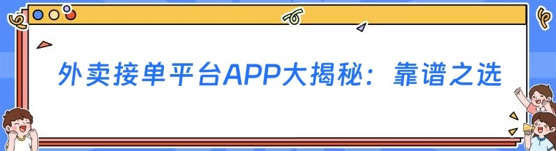 外卖接单平台APP大揭秘:靠谱之选在这里
