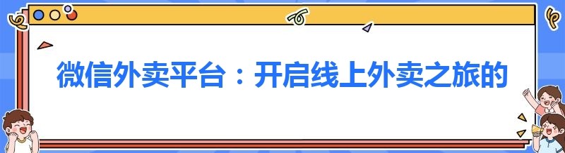 微信外卖平台:开启线上外卖之旅的准备指南