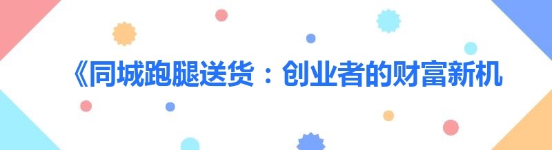 《同城跑腿送货:创业者的财富新机遇》