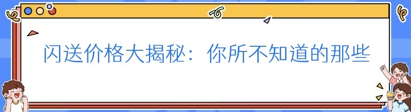 编辑 闪送价格大揭秘:你所不知道的那些事儿