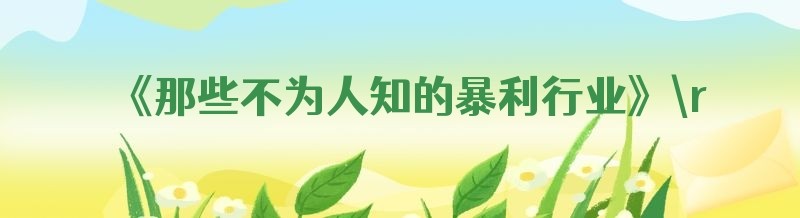 《那些不为人知的暴利行业》