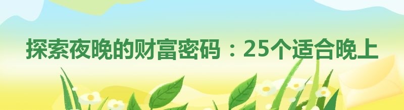 探索夜晚的财富密码:25个适合晚上做的副业新动态