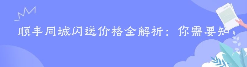 顺丰同城闪送价格全解析:你需要知道的那些事儿