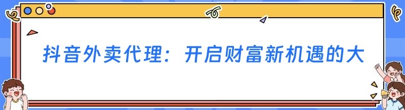 在当今数字化时代,外卖行业如同一颗璀璨的明星,闪耀着巨大的商业潜力。而抖音,作为全球知名的短视频平台,其强大的用户基础和社交影响力更是不容忽视。当抖音与外卖行业强强联手,抖音外卖代理便成为了众多创业者眼中的香饽饽。那么,如何才能成为抖音外卖的代理呢?这其中又隐藏着哪些不为人知的秘密和技巧呢?今天,就让我们一起揭开抖音外卖代理的神秘面纱,让你学到便是赚到!