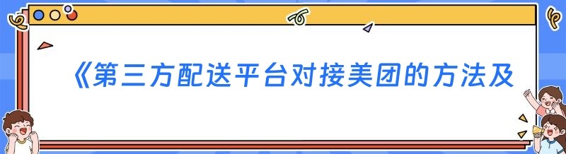 此外,与美团的沟通和合作也非常重要。第三方配送平台可以与美团的相关部门保持密切联系,及时了解平台的政策和要求,解决对接过程中出现的问题。同时,双方可以共同探讨合作的模式和机会,实现互利共赢。