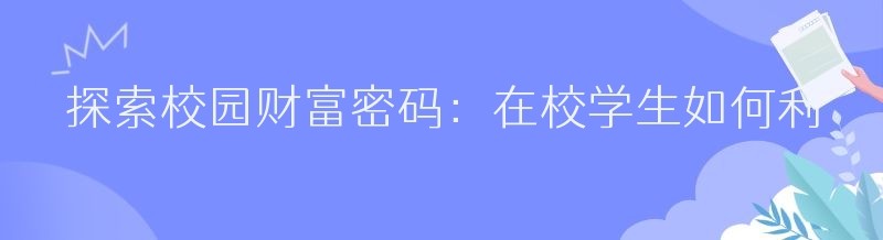 探索校园财富密码:在校学生如何利用手机轻松赚钱